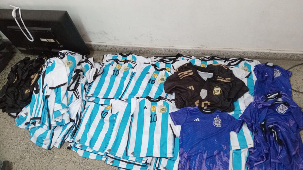 La Policía de la Ciudad le dio un golpe a una mafia de Camisetas de futbol, secuestraron indumentaria deportiva trucha...